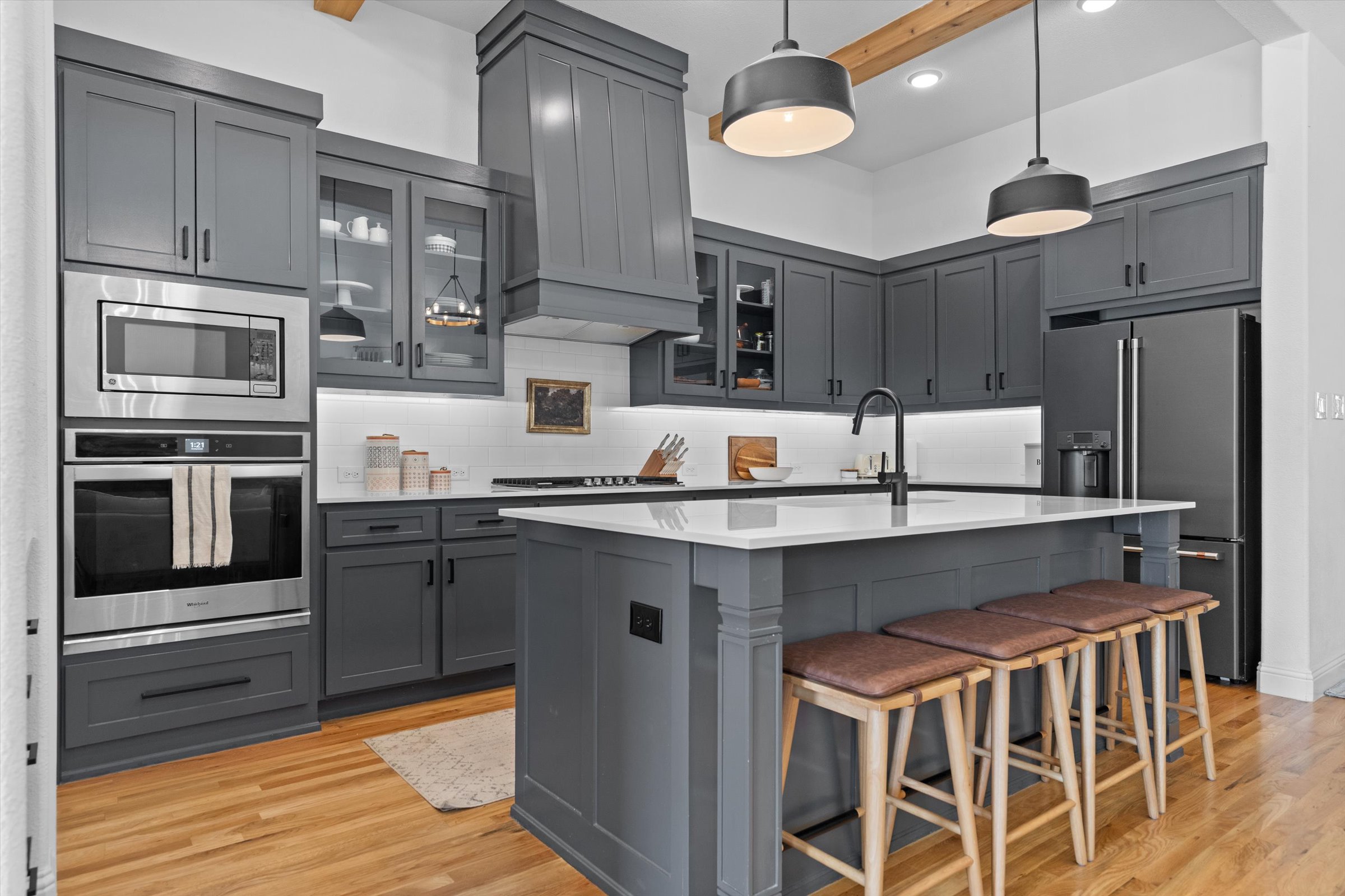 The kitchen sits at the center of it all with generous counter space, modern finishes, and a layout that keeps you connected whether you’re hosting guests or managing a busy weeknight at home.