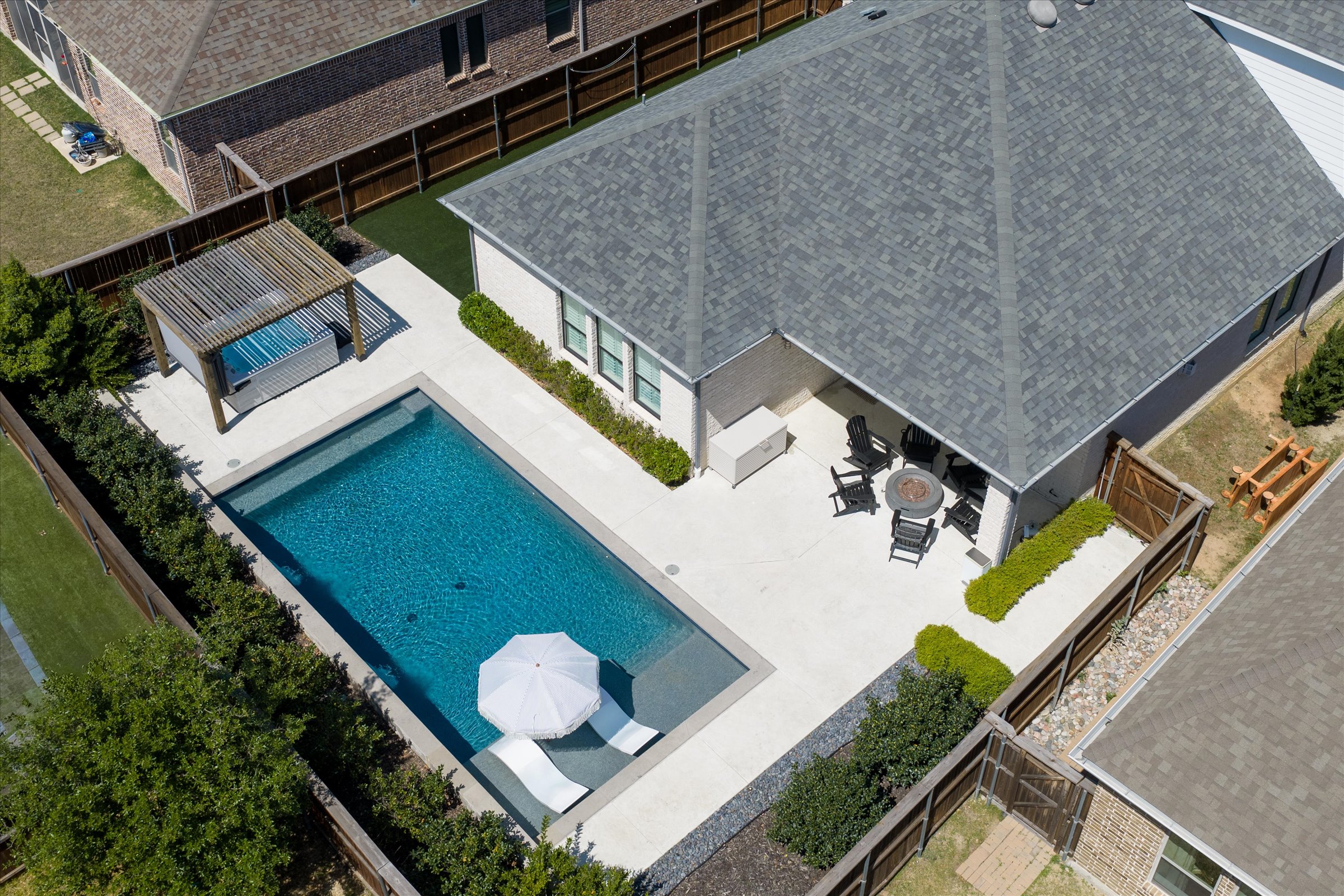 Step outside and you’ll understand what sets this one apart. The backyard is fully built out with a pool, hot tub, pergola, and low-maintenance turf, creating a private outdoor space that’s ready for entertaining, relaxing, and enjoying long Texas evenings.